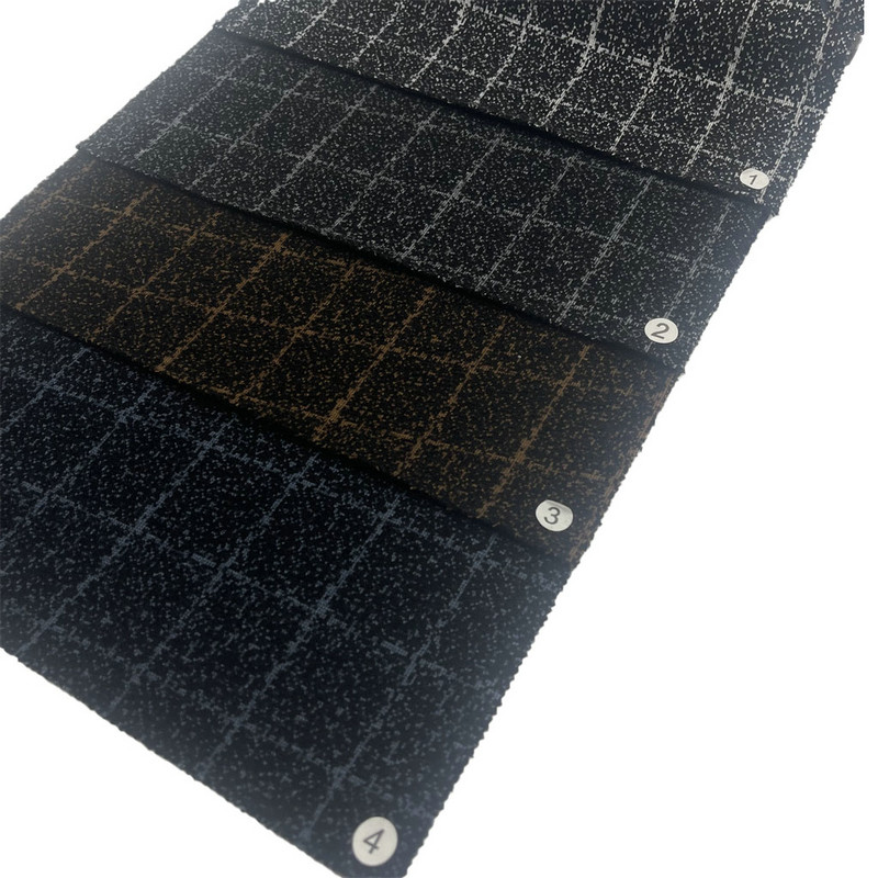 この生地、商品番号 182808-1 は、ブレザー製造用に設計されたニット生地です。ポリエステル 65%、ナイロン 27%、アクリル 6%、ウール 2% の混合繊維で構成されており、単位面積あたりの質量は 820g/m です。表面には、編みプロセス中に形成されたチェック柄とドット柄を組み合わせたパターンが組み込まれています。この特定の繊維組成は、相補的な特性を生み出します。ポリエステルは構造の安定性をもたらし、ナイロンは耐久性を高め、アクリルはロフトに貢献し、ウールは生地の手触りに影響を与えます。かなりの重量とニット構造が生地のドレープ性と断熱性に貢献し、ブレザーなどの構造的な衣服に適用できます。