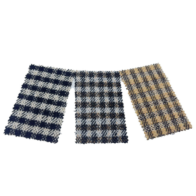この生地は、商品番号 3811 として指定されており、ウール 10% とその他の繊維 90% で構成されるツイード生地です。単位面積あたりの質量は 550 g/m で、重量感のある構造です。ブラウンの表面は、ツイル織りのベースにチェック柄が組み込まれており、格子の下に斜めのラインを作り出しています。生地にブラッシング加工を施し、繊維を起毛させ、柔らかな表面感を実現しました。この技術は、ツイル織りの構造的完全性を維持しながら、生地の触感特性を変更します。技術仕様により、視覚的なパターンの定義と強化された表面の手触りを組み合わせた素材が得られ、耐久性と触感の快適さの両方が必要なコートの製造に適用できます。